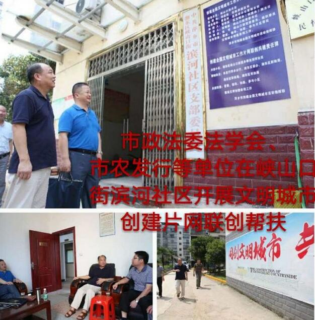 8月3日上午,市政法委法学会、市农发行等单位到峡山口街滨河社区开展片网联创帮创工作。