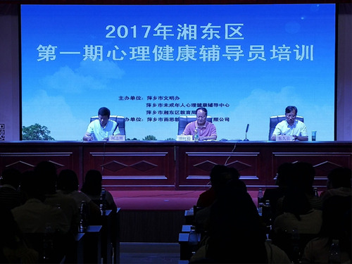 为进一步提升湘东区未成年人中小学教师对未成年人心理健康教育的普及和心理健康教师的实践能力,帮助未成年人健康幸福成长,加强湘东区中小学老师专业化人才队伍建设,落实2017年全国文明城市测评体系及全国未成年人测评体系的要求。经研究决定,萍乡市文明办、萍乡市湘东区教育局、萍乡市未成年人心理健康辅导中心、湘东区未成年人心理健康辅导站在2017年8月13、14、15日联合举办为期三天的萍乡市湘东区2017年第一期心理健康辅导员培训班。
