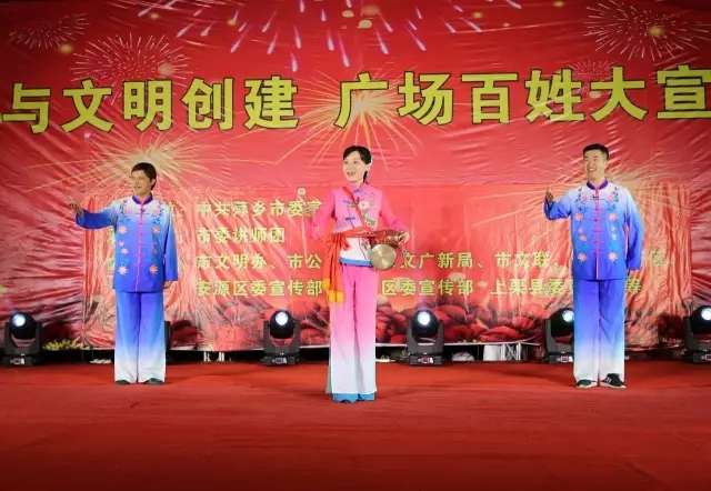 萍乡春锣《我为文明创建来鼓劲》准时拉开了“我与文明创建百姓大宣讲”活动的序幕。精彩的表演博得了现场观众一阵又一阵喝彩声。