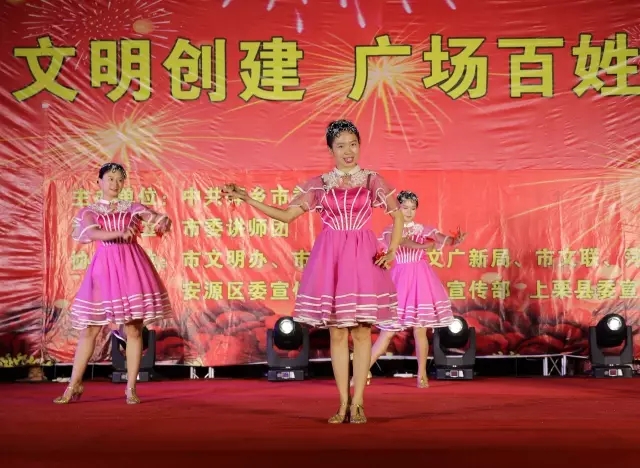 活动现场不时笑声连连、掌声阵阵,时刻洋溢着欢声笑语。市委宣传部、市委讲师团、市采茶戏歌舞团等相关单位的文艺工作者将理论宣讲与文艺表演相结合,以春锣、音乐快板、双簧、诗朗诵、歌舞等节目形式,表演了《板凳哥赞》《文明创建靠大家》《萍乡大变样》《潇洒萍乡县》《老阿姨》等8个精彩节目,富有地方特色、活泼新颖、形式多样的节目让现场观众更加知晓了创建文明城市的重要性。(供稿:邬芳、刘庆球)