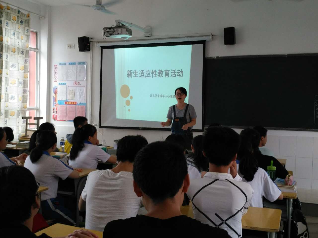 为了让刚刚踏入初中校门的新生们尽快适应环境,帮助他们解决在崭新的初中生活中遇到的问题和困难,湘东区未成年人心理健康辅导站针对湘东镇中学七年级新生开展了“新生适应性教育”活动。