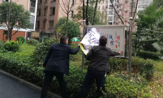 湘东镇对背街小巷、小区的环境卫生和公益广告进行督导整改。
